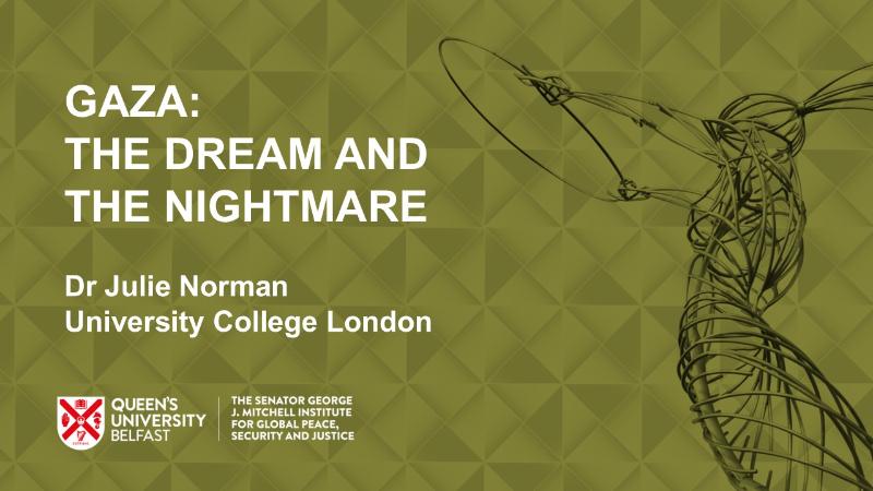 This seminar will focus on the themes of the latest book by Dr Julie M. Norman and Maia Carter Hallward, Gaza: The Dream and the Nightmare (Polity, 2025) which tells the story of Gaza from its early foundations, across decades of occupation, to the devastation of the ongoing war. Rather than focusing on elites or abstract politics, at the book’s heart are ordinary Gazans -- students, aid workers, journalists, and techers -- whose first-hand testimonies vividly illuminate the realities behind the headlines.
