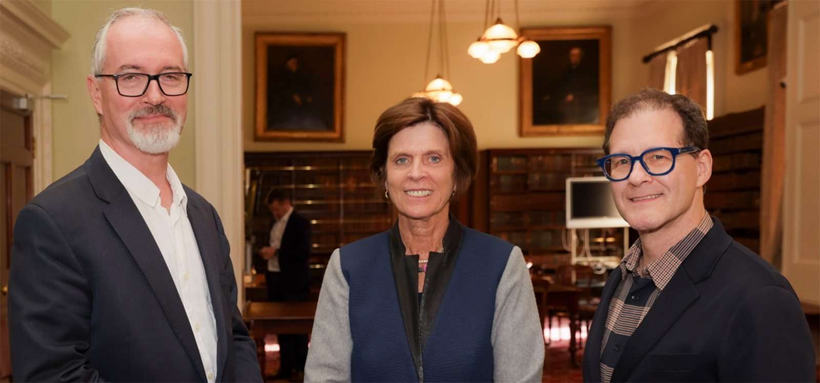 Pictured L-R: Professor Richard English, Dame Louise Richardson, and Professor Daniel Carey