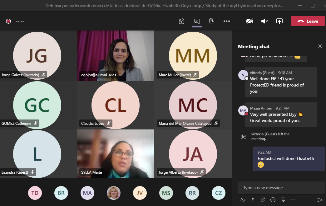 We are delighted to announce PhD success for Elizabeth Goya Jorge! Elizabeth is an early stage researcher with the PROTECTED Project at ProtoQSAR and completed her thesis defense via Microsoft Teams on October 20, 2020. Congratulations Elizabeth!
