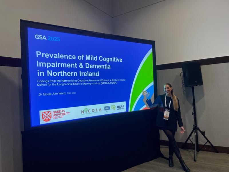 Dr Ward’s presentation, “Measuring Frailty in the Northern Ireland Cohort for the Longitudinal Study of Ageing (NICOLA): Impact and Opportunities”, highlighted how NICOLA data can inform understanding of frailty and healthy ageing.
